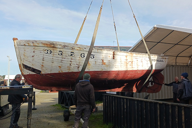 Kromagoul, drôle de nom non ? L’annexe du langoustier Jep porte le nom un petit singe parlant, un personnage d’une bande-dessinée embarquée par les marins lors d’une campagne de pêche à la langouste dans les années 70. Ce canot est sorti en 2023 de la réserve où il était entreposé pour être entièrement restauré par l’équipe technique du Port-musée. Le chantier, installé sur la lace de l’Enfer, doit durer deux années, le public peut découvrir le travail des charpentiers ainsi que l’histoire locale liée à la pêche à la langouste lors de visites guidées.